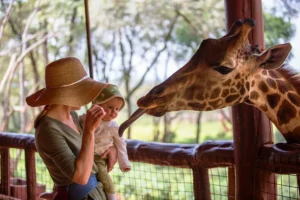 A visit to the David Sheldrick Elephant Orphanage is unforgettable. Kids watch wide-eyed as the young elephants run in for their bottles of milk, slurp it down, then tumble into the mud for a playful splash. It’s a joyful, noisy, messy moment that children talk about long after they’ve left.